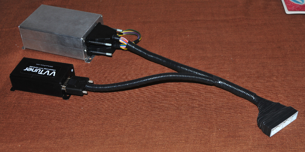 I included a dummy "loopback" DB-15 connector that connects pin 1 with 3, and 2 to 4. My understanding is that the engine runs when he has the dummy installed on the harness instead of the VVTuner, and no RPM when he installs the VVTuner.