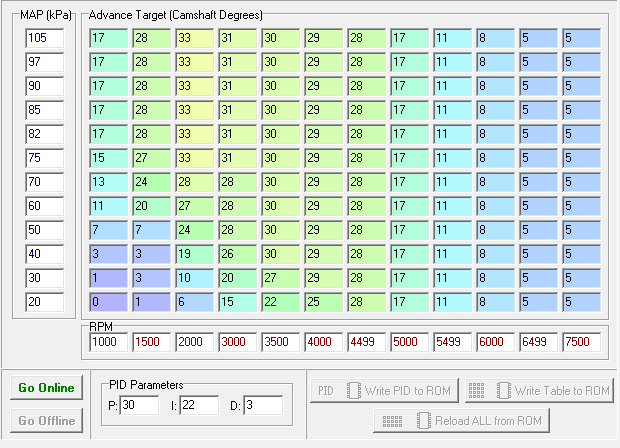 I'm pretty sure there are gains to be had with adjustments in the cruise cells. You're the best candidate to find those gains too. Advancing the can in cruise conditions will produce an EGR-like effect. If we're only advancing 38* out of a possible 44*, there should be possibility for improvement. Now in your arsenal of MPG-improvement tools is VVT, injector timing too. I will be interested in what you come up with for that.