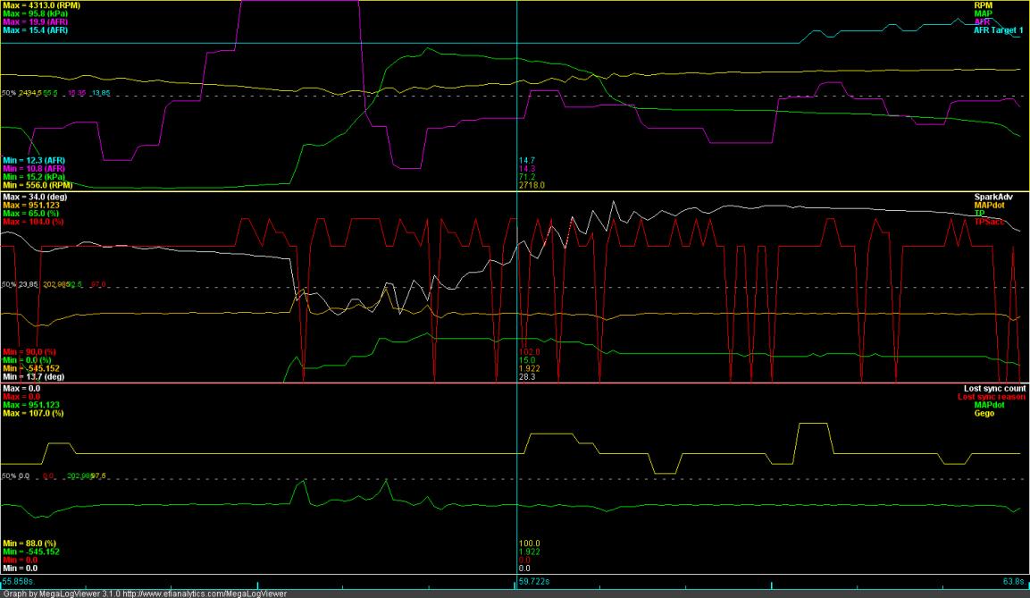 On another note, I got 34mpg at 80mph with the headlights up after some work on my return home from F1. I'm running 10* of advance on the cam in the cruise cells, 15.3afr, and 31* of spark.