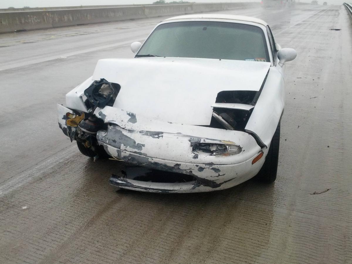 Sunday morning April 27th I was driving the super commuter back to Dallas from Austin. I was north of Wacco on I-35N just west of Abbott Texas. I was cruising in the right lane with cruise control on at 70mph. It was slightly raining out, nothing worse then having the wipers on the lowest speed setting. I started going up an overpass over and the backend just went out and the car started spinning. Best that I can figure is that my speed started to fall slightly and cruise control decided to give it a bit more gas, that along with going up a hill and the rain for whatever reason caused the rear to spin. I hit the guard rail on the front passenger side and the spun around and came to a stop. Luckily I managed to not be injured in the spin and there were no vehicles around me. One truck was behind me and he pulled over to check that I was safe and not injured. Then the cops show up, call their tow truck and I get a $350 tow bill to go 5 miles off the interstate to be dropped in a Luvs truck stop parking lot. I then had to wait for AAA to get their driver out to me to get the car towed the rest of the way up to Dallas.