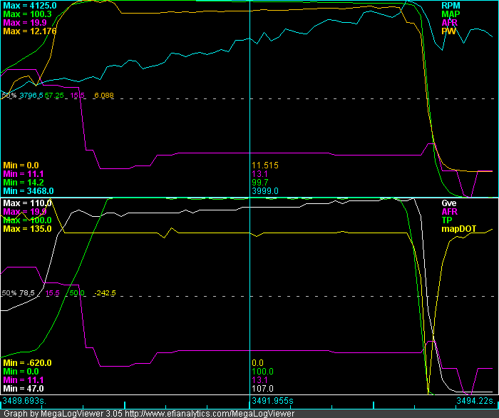 I now have MS2 in the car, just drove it ~4.5-hours at 80mph and did about 28mpg at 78mph. Here's the log, I'm not sure what to do next. I'm going to try the drive home at 15.7 with a little less spark angle depending upon how it drives and see if my PW is lower that the drive down.