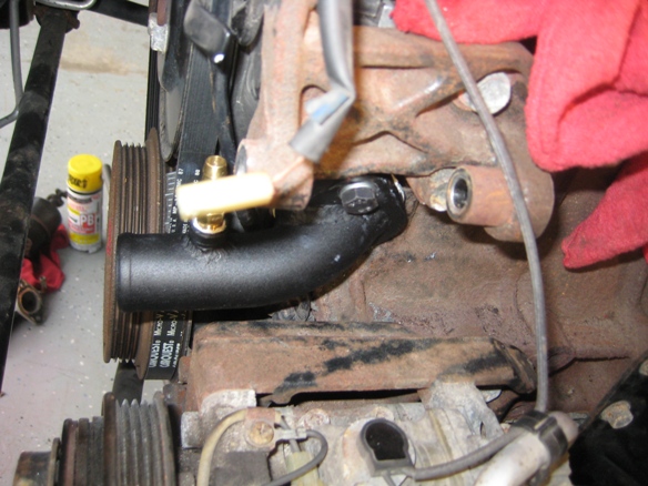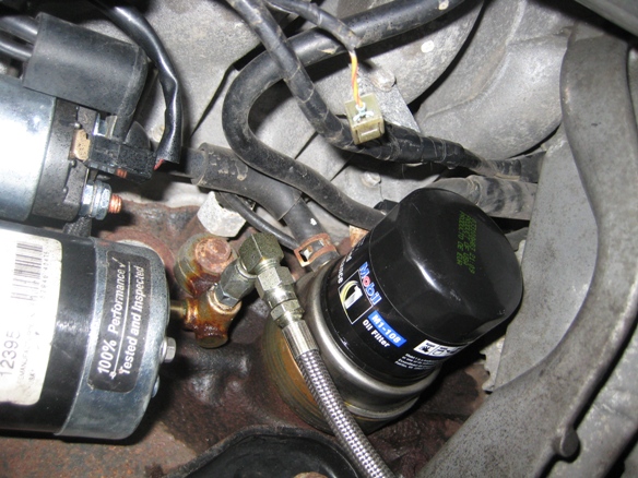 I started working on the installation. So far, I have one part of the coolant re-route done, the PWS cooler installed, the heater hose re-routed and heat wrap done... I included some pictures. My poor repair of the dipstick did not hold up, as you can see. I'm hoping to get more things done this weekend.