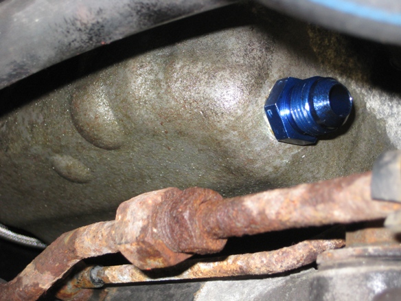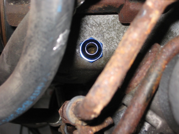 . So, after I installed that, I hand tightened the hose and per the instructions, I took the oil drain plug out, let the oil drain out. I routed the braided hose up through the engine compartment, put a funnel in it, and poured about 30 oz of mineral spirits into the funnel. That pushes any remaining shavings towards the drain plug area. After I put the oil in a different container , I found shavings in the original drain pan I used, so it definitely worked out well. I think the hole, after all was said and done, is straigh, but lower than the picture in the manual, but I think it will be fine. When oil starts leaking out of it, I will have to deal with it
