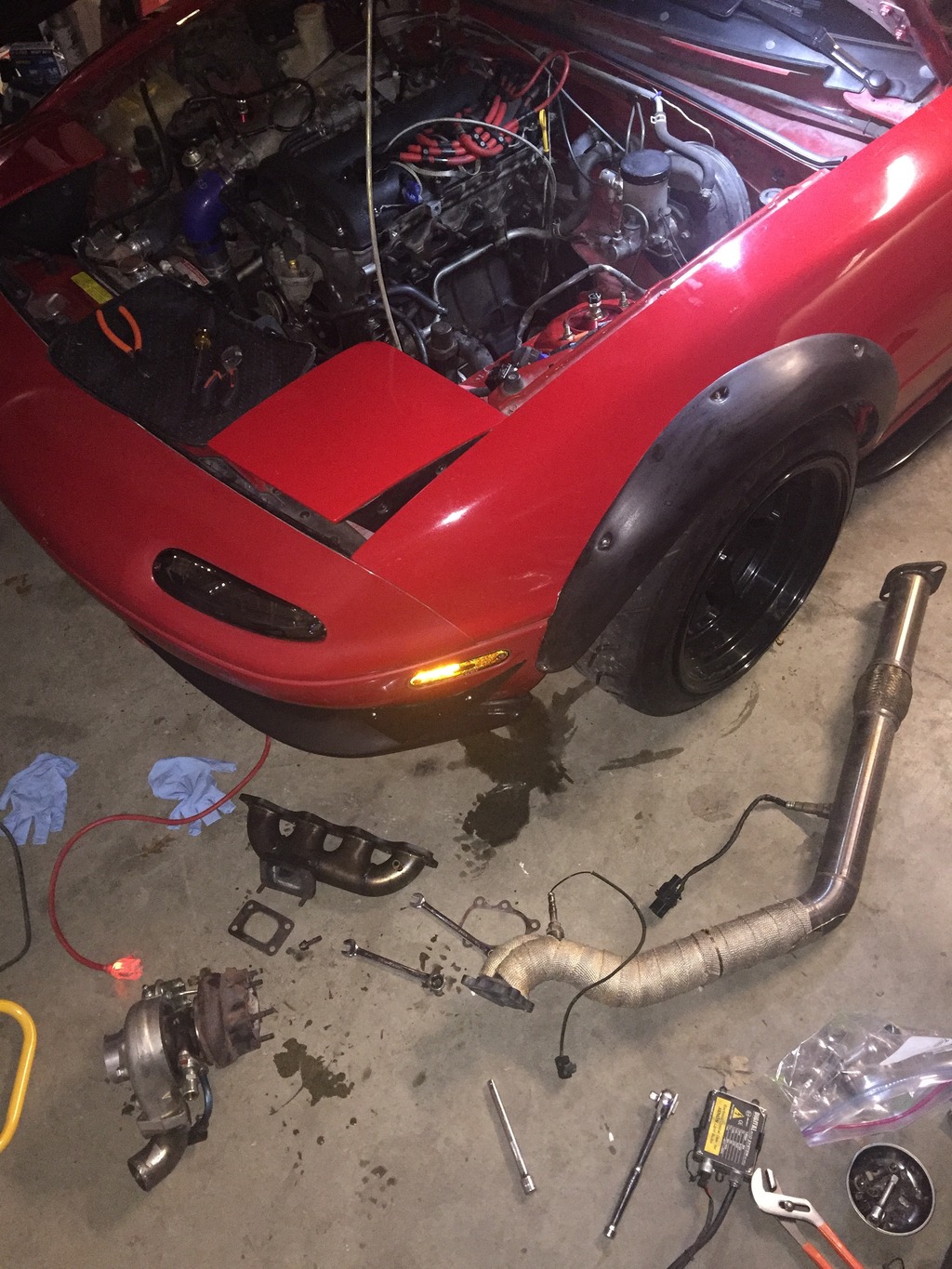 im back, only to acquire more cats, so have at it! Anyways i cracked my manifold, fixed a bunch of little things, and bought a gen 1 DIY MS ECU so i can finally feel cool. Ive also spent the last 2 months or so prepping the car for paint for a complete repaint. still going with red because i dont want to pull everything out of the trunk and engine bay, i dont like having mismatched ****.