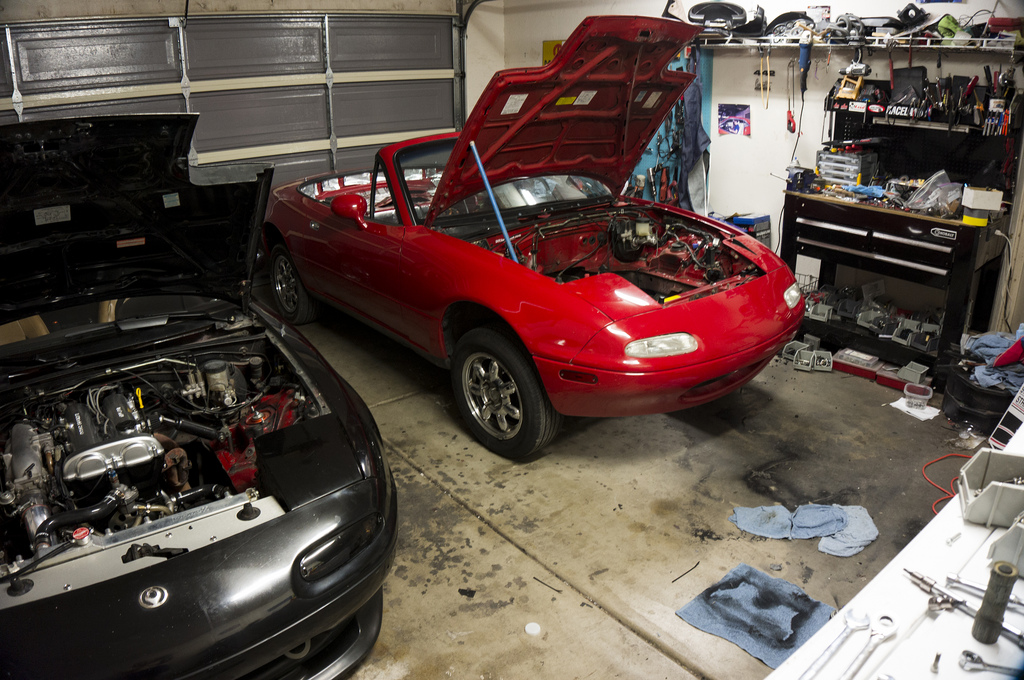 The joy of having two is that I can do all the stuff to the black car, as it isn't as nice body wise. Then just restore the red car more or less and have the best of both worlds (lots o mod miatar, and mostly stock miatar.)