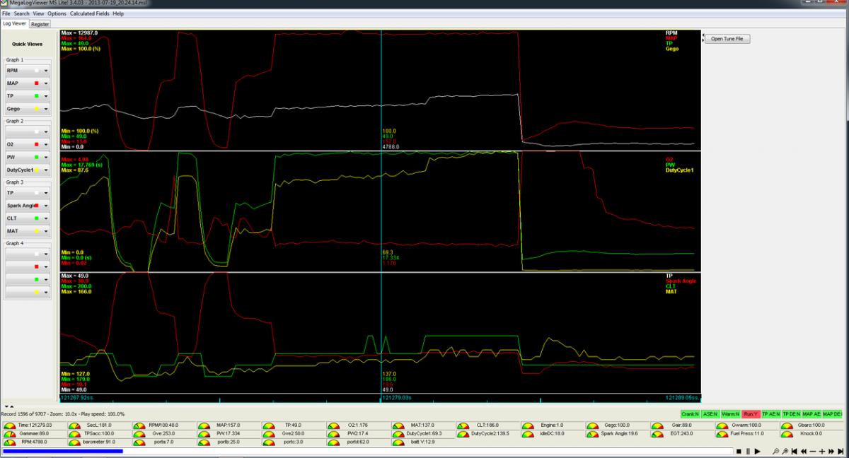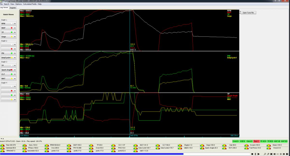 That boost looks beautiful. Injector duty cycle remains at ~70 until 5700rpm where it's back up high again which is odd... but the rpm jumped at the same. That boost is dead straight though which I'm very happy about. Below is the first log for comparison..