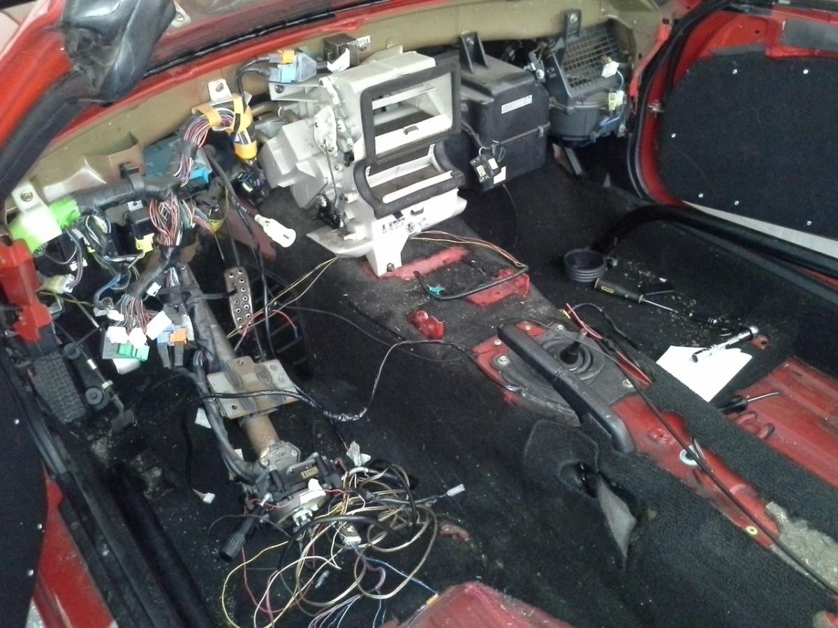 **** just got real. Project FML dash organization has begun. I don't know how far down I will be stripping this B yet. But I will say I'm glad I decided to do this. I'm a bit overwhelmed right now with the massive amount of wires, but once I start mapping it out and sorting through what is what it should be good.
