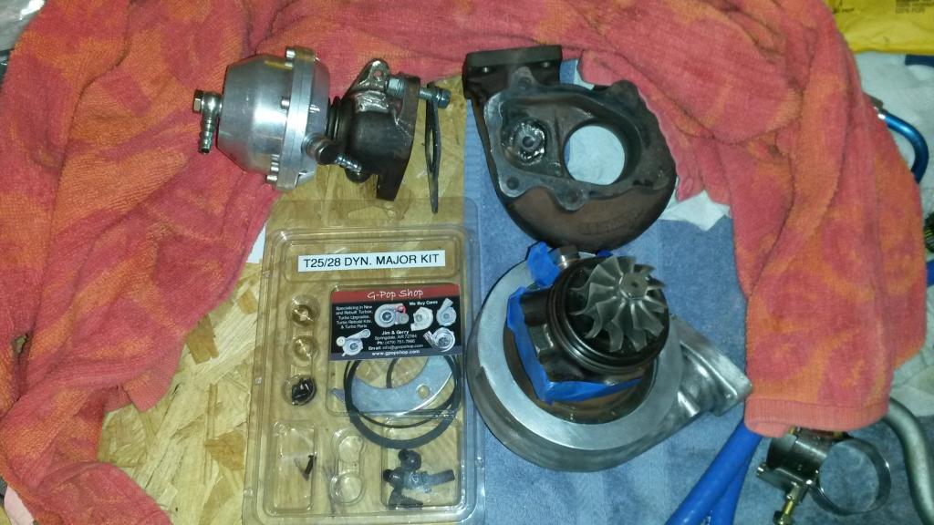 Now I had $1000 to play with and get the turbo installed. I got this t25 turbo and Tial wastegate from the zilvia.net forum for only $130 shipped for both. The turbo did not have much play but I still bought a g-pop rebuild kit and rebuilt it myself for under $100