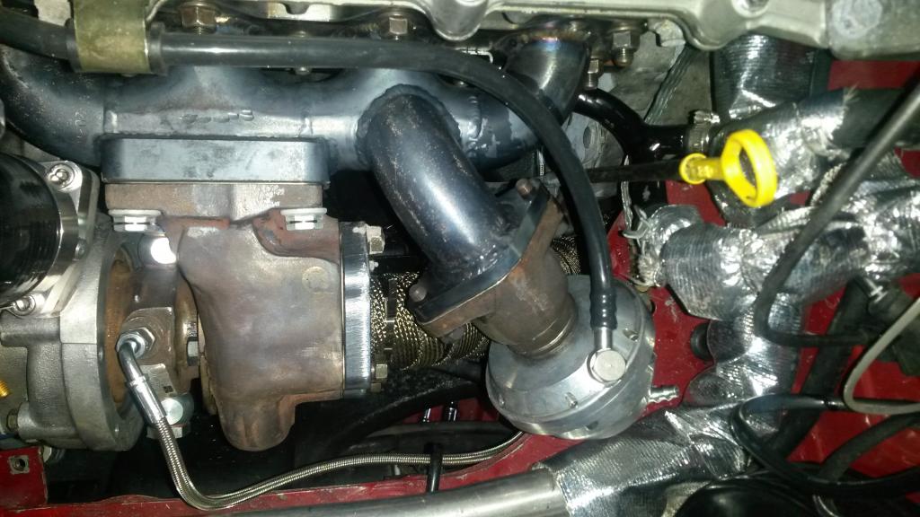 And here is a close up pic of how everything fits snugly. Thanks Abe for the awesome manifold. The last turbo setup I had was from Begi, making your own stuff actually makes everything easier and fits better.