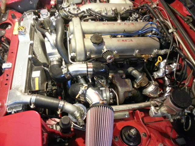 Things to do will be to finish the intercooler piping and made a downpipe and dump tube. Hopefully I will get the exhuast manifold from Abe early next week. My MSPNP was dyno tuned for the JRSC so it should not be too far away to run decent with the turbo.