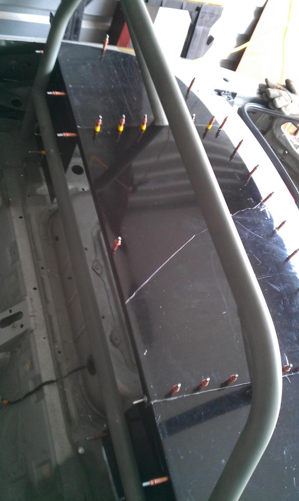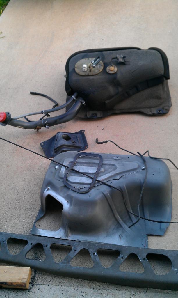 A little more on the build. Currently running a 5 gallon aluminum RCI fuel cell. Originally I tried a 8 gallon plastic cell but fitment/placement caused pickup issues. There is quite a bit of weight there. The fuel cell is now mounted back were the trunk floor used to be near the battery. I bent a piece of steel and welded in place of the hammering that occured on the cross rail piece there. Had to do that to get the 8 gallon tank to fit. That whole ordeal was such a waste.