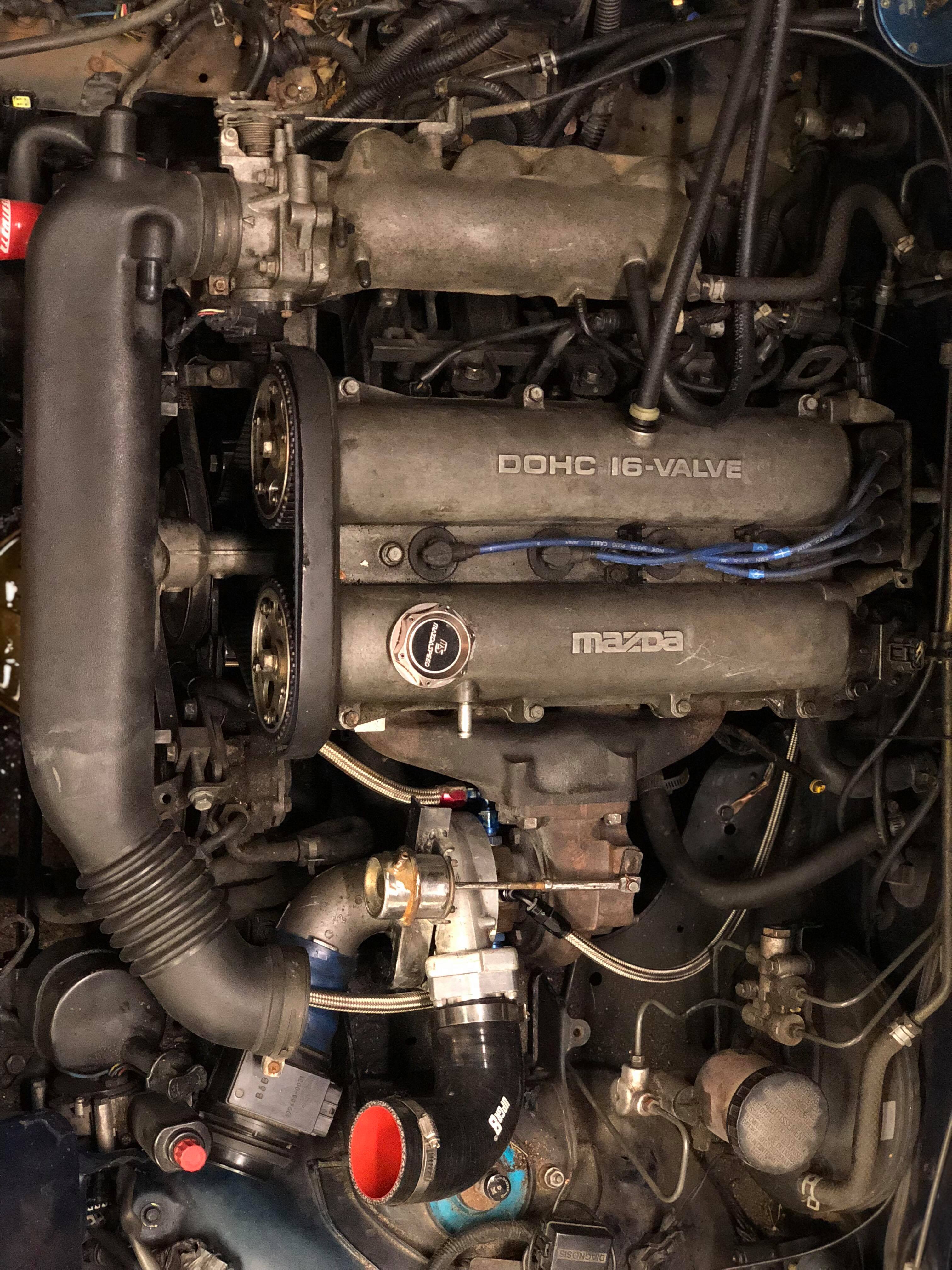 What's up everybody. I'm another broke kid doing stupid **** to his NA. Whodda thunk. I don't have many pictures leading up to finally putting the turbo on but I have some boost prep already knocked out. Can't figure out how to upload pictures on mobile. But I bought it as a 96 with 64k and an isr exhaust but some electrical issues. So far I've installed a header that came with the car, megan ez street coilovers, fab9 poly engine mounts, innovate wideband, na6 oil pressure guage and sender, exhintake with fidenza cam gears and fanceh gates timing kit. Last week my header cracked and I have 90% of the parts I need to finally install the turbo so I decided to just bite the bullet and go for it. For fuel management I have an fmu for the time being. No need to megasquirt shame me I already know I'll need it down the road. Manifold and downpipe are from begi a good friends given me to use. I'm going to use a noname t25 for the time being until I rebuild one of my garretts. Oil drain is the typical 3/8 18 npt with a 5/8 hose. Oil feed is coming from a sandwich plate and is what I'm currently waiting on. Two fittings didn't ship until Dec 23rd so well see if I get them before New Years. Ic piping will be 2.5" throughout and either be straight from the turbo to the intake, or the normal way to a shitty jdm sporto fmic. Bov is undecided atm as well.