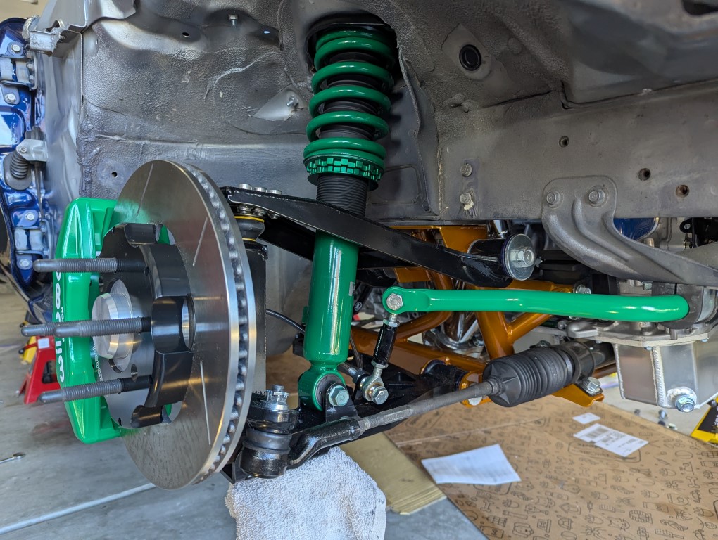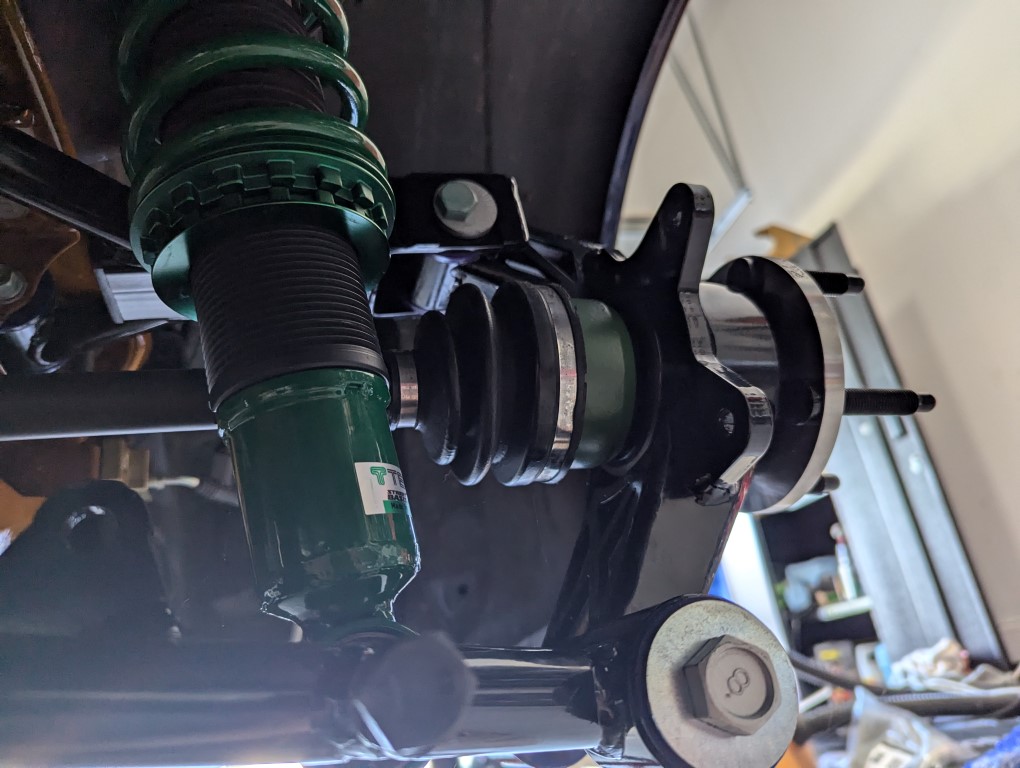 The crazy thing about these knuckles is how much they lower the car all by themselves. I'll have some pics, but let's just say I put the Teins at, what I thought, would be a reasonable height, trying to error on the higher side, and my car looks completely slammed right now. I might have to run them at full height just to make it streetable.