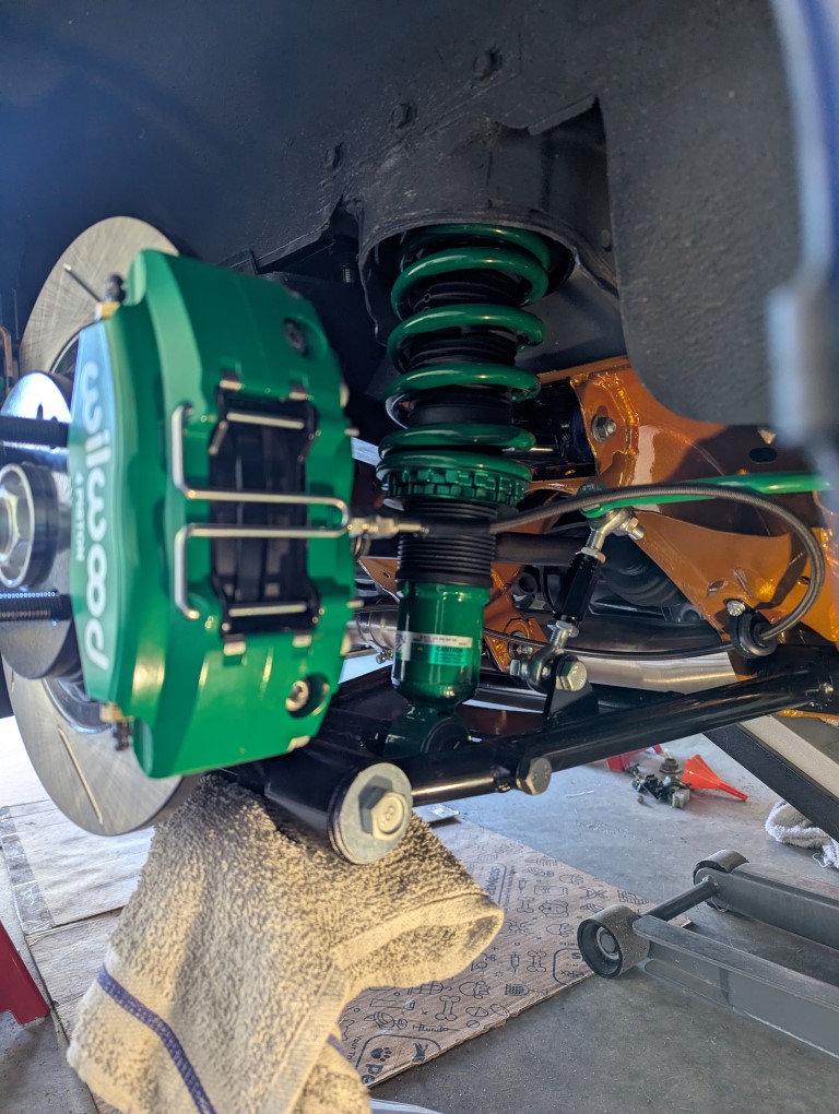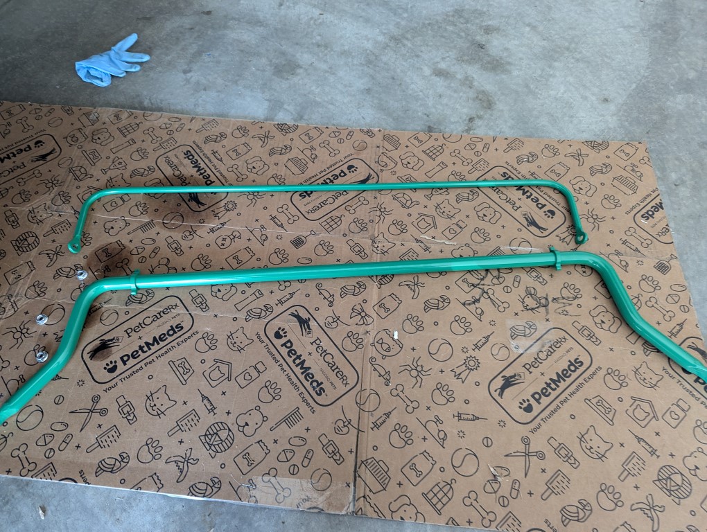 And finally powder coated my oem sway bars in as close a match as I could find to the Wilwood competition green