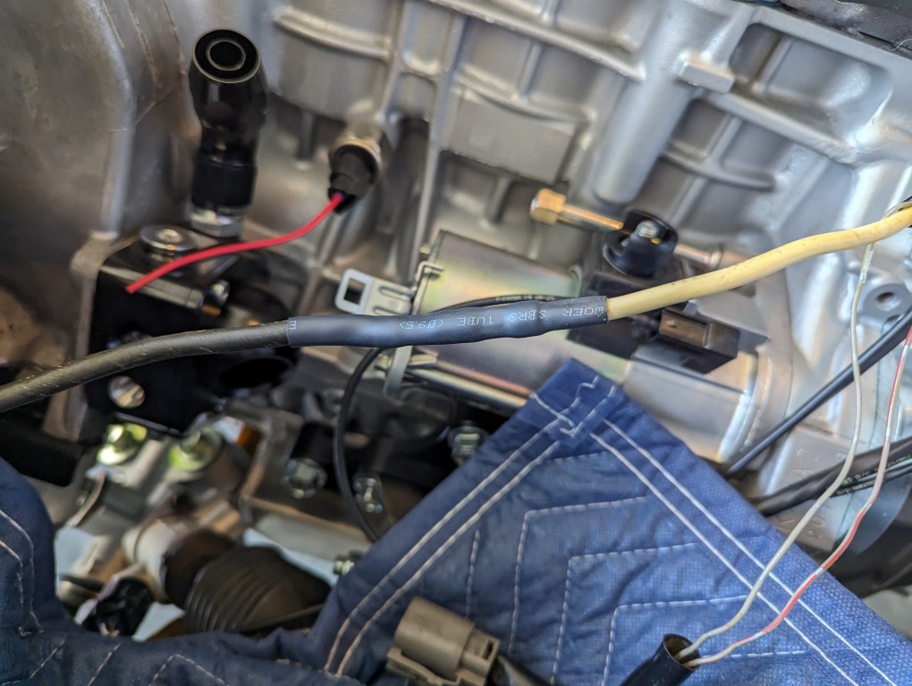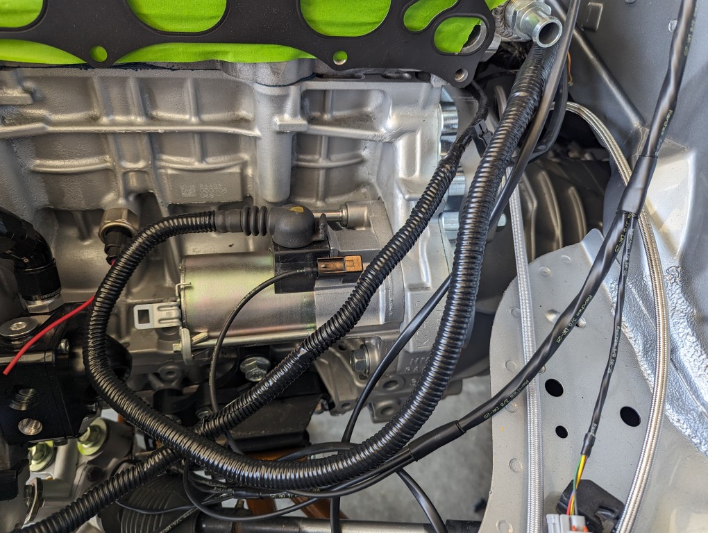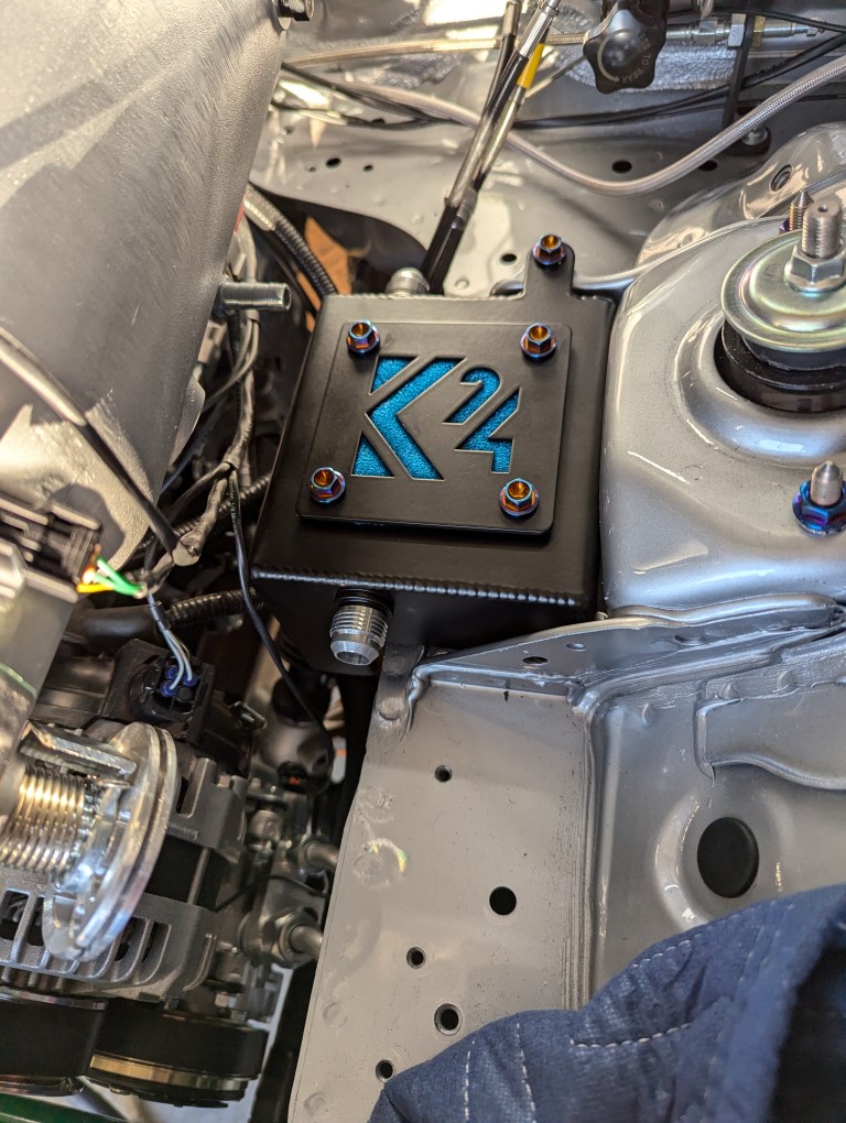The K Power harness requires you to extend or jumper the OEM power harness to the K series alternator and starter. Also the kpower harness gets it's power by just adding a 2nd ring terminal on top of the existing ring terminal at the fuse box in the engine bay. Problem is, there is no room for a 2nd terminal. You'd need a longer bolt as well as that little door covering it would not be able to close. So I just spliced the wires together, crimped on a larger ring terminal and then added some heat shrink. I'm pretty happy with the results. The little plastic door still is a struggle to close, but it does close!