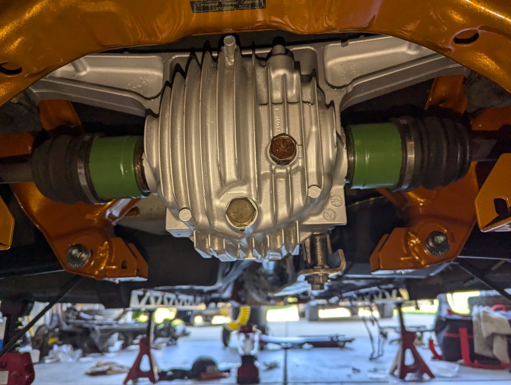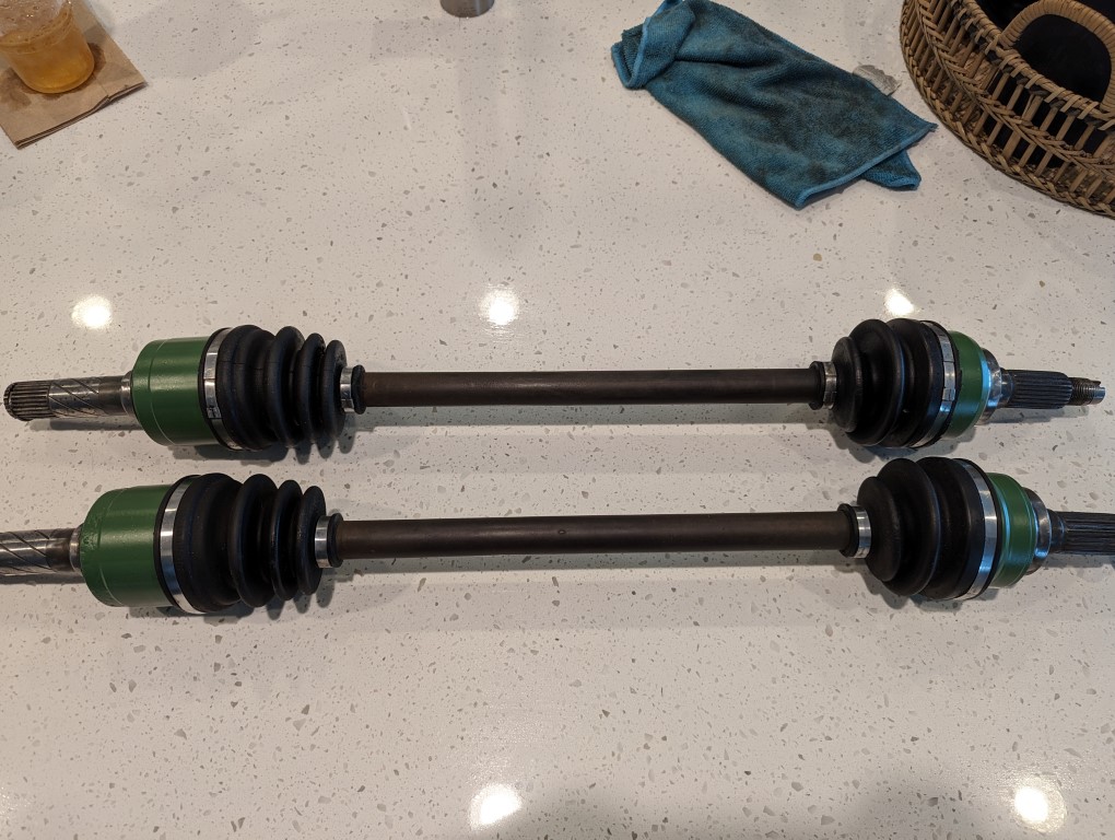 Cleaned and painted the rear axles. Unfortunately for me. the person I bought these off sold me axles from different cars. I was a little upset when I found out. One axle uses the smaller 29mm nut and the other uses 32mm.
