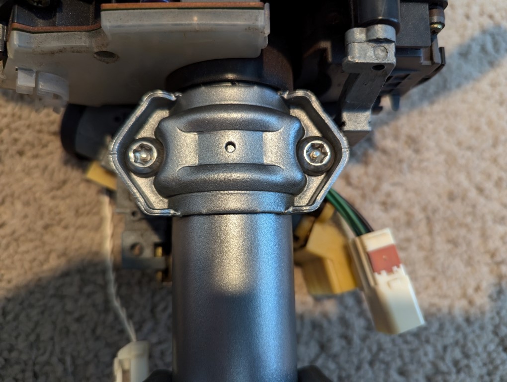 Cleaned and painted the steering column (so much surface rust on interior metal components of this car). Swapped the non-serviceable bolts with torx head bolts.