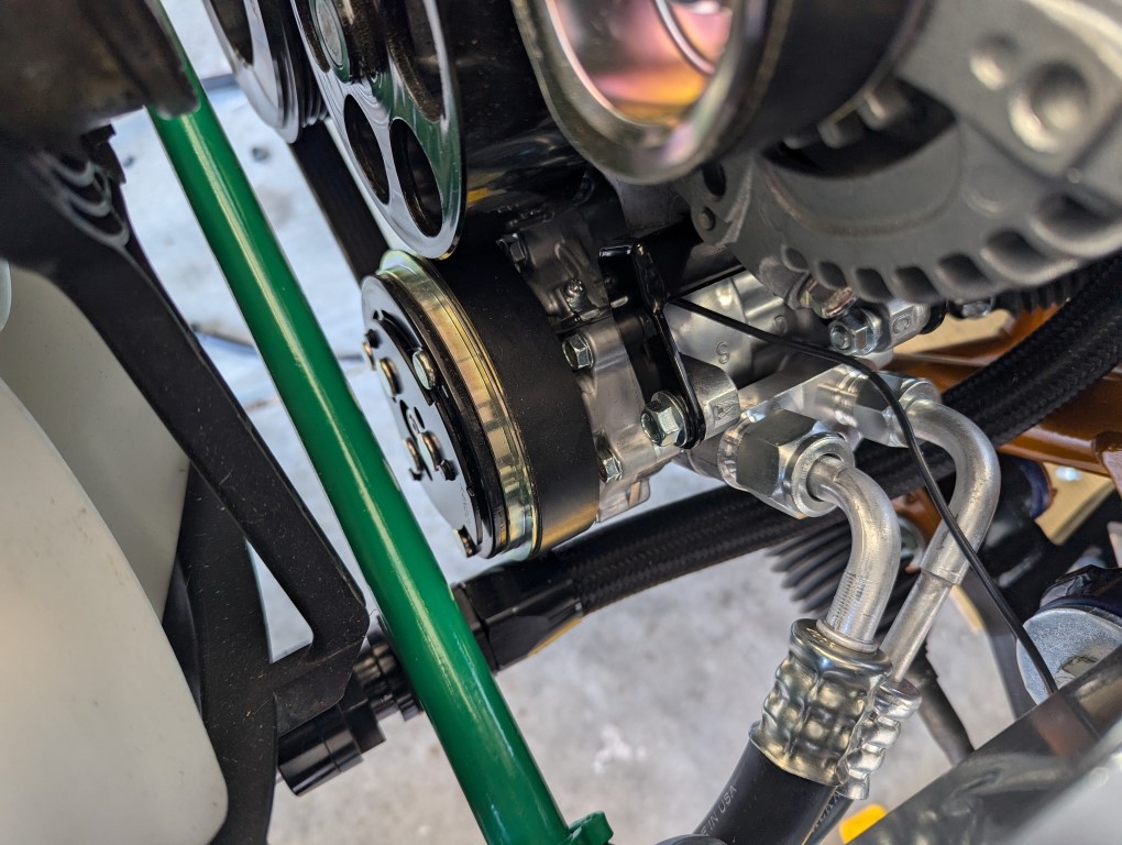 You can see how close that compressor wheel comes to the AN line for the radiator. For now, the AC compressor isn't part of the belt system yet since I need to rework the AC lines, but i'm going to add an engine damper to minimize movement hoping we don't see that pulley his the radiator line.