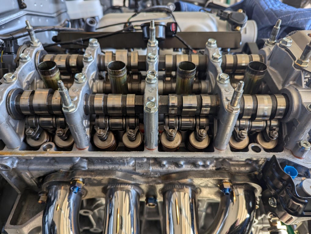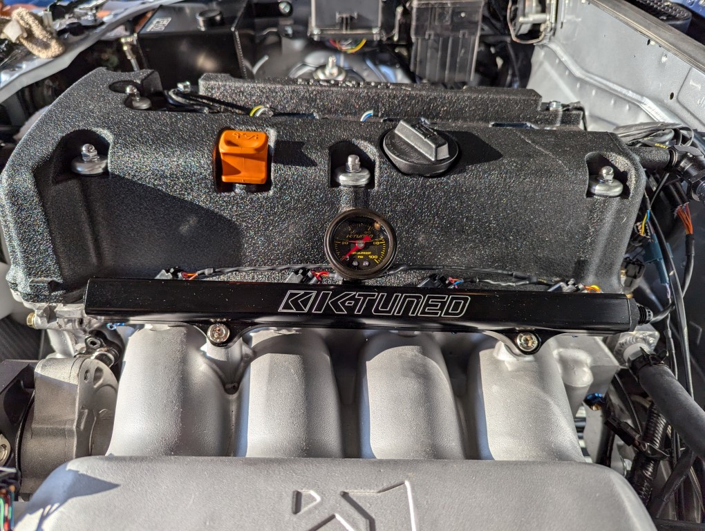 Last update for today.. some random shots of the k-tuned fuel rail, and the valvetrain with the valve cover off. This was done before the engine had oil in it. I'm sure right now it wouldn't look quite as clean.