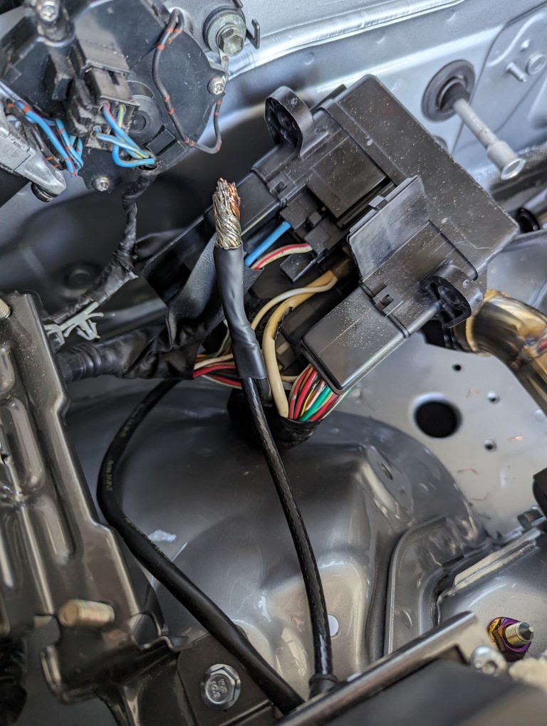 Electrical is not something I enjoy, and I could chase gremlins forever. So because I needed to extend a bunch of my front wires for the wire tuck and because I had my headlights retrofitted with BiXenon HIDs that have their own wiring, I opted to find a local auto wiring place, and just have them work it. My hope is when the car comes back, it's all wired up and working and we can then throw the tune on and finish putting everything back together.