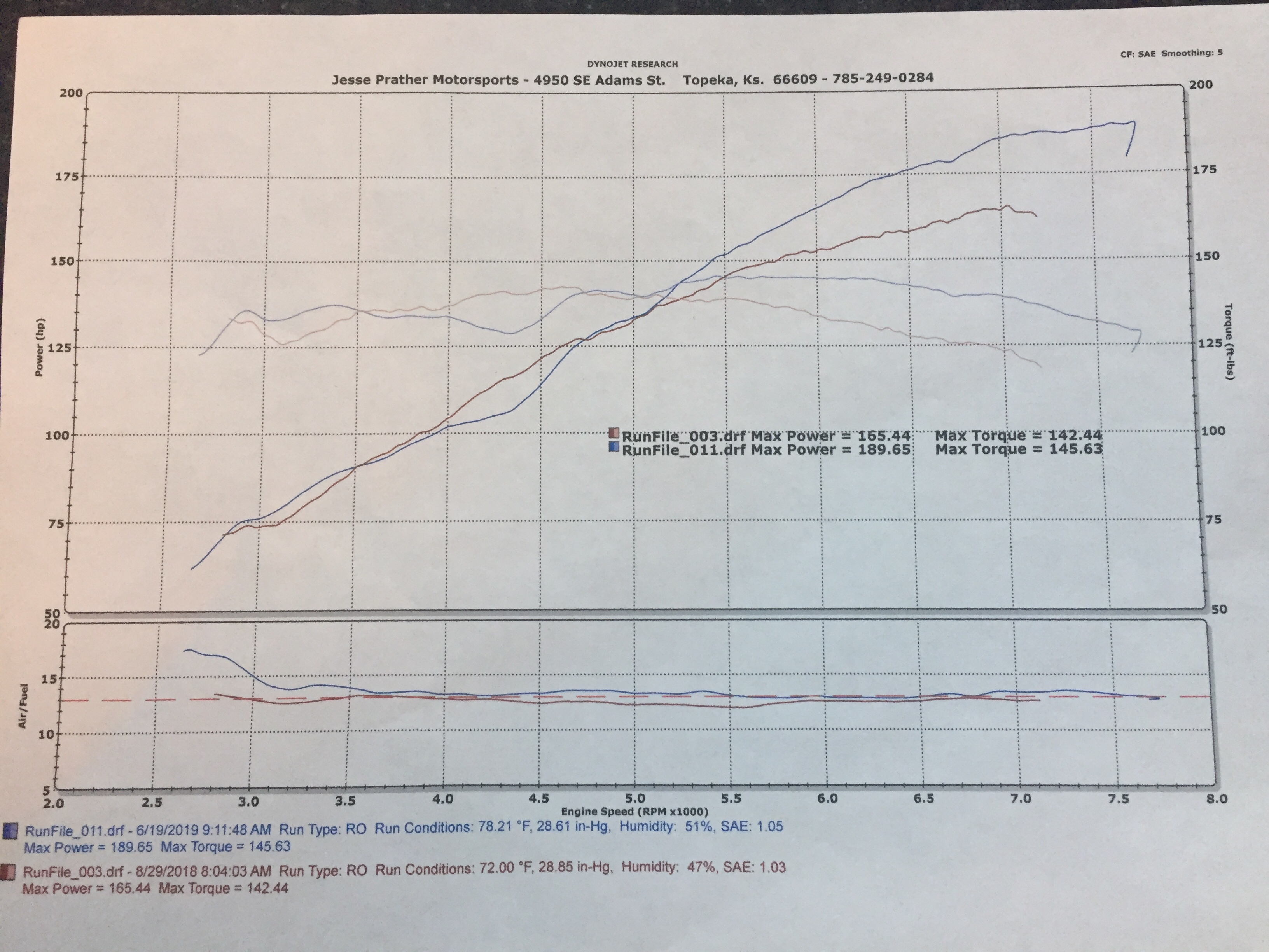 The delta is what matters, obviously. This is our "Budget NC" build (the car pictured in Emilio's top post). Lower line original 2.0L motor with exhaust system, upper line our junkyard 2.5L, Xero Limit cams, exhaust and requisite tune. Standard 91 octane fuel, we haven't changed over to E85 yet so there's a bit more easy power to be had there. I think we may have done some additional tuning work with Xero Limit after this dyno day because driving the car I don't feel that torque dip/spike, but then again most of my time in that car is on track far above 3,000 RPM. Peak gains + 40 whp / 50 ft-lbs.