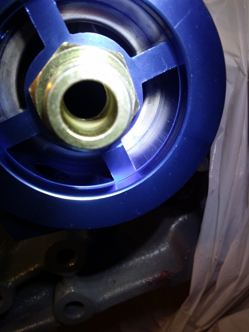 Cleaned up the OEM oil cooler. Ran RTV on the orange silicone seal just to add some insurance in a place that always, always leaks.