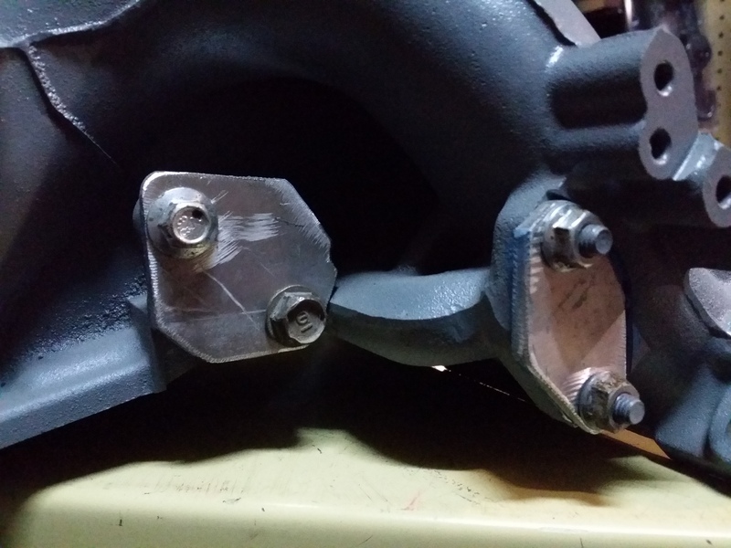 Front of head freeze plug and retaining plate put in. Stuck the 30mm plug in with a coating of RTV. My jigsaw had problems so I used a cutoff wheel on a grinder to make the plate, not very accurate. It's got more angles than a protractor but it was done in minutes and no one will see it. Adding one to the EGR ports as well. All from a huge plate of 5mm thick aluminum. In your scale it's like 27.543/186.34 half's of a third thick.