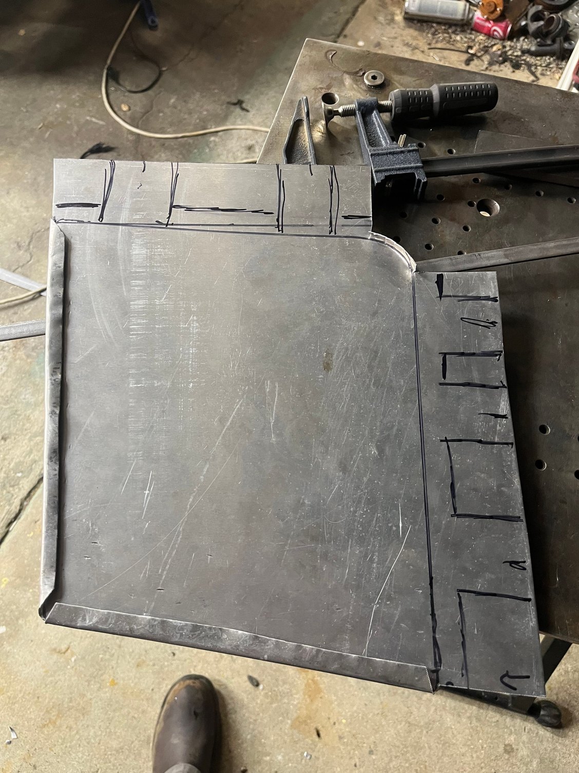 Apparently I failed to capture a lot of the intermediate steps. It’s not done quite yet, but close. If I had a shrinker and stretcher, this would have gone better, but I managed the job with some pliers, and will clean it up some more tomorrow. The gap at the front edge is going to be fixed.