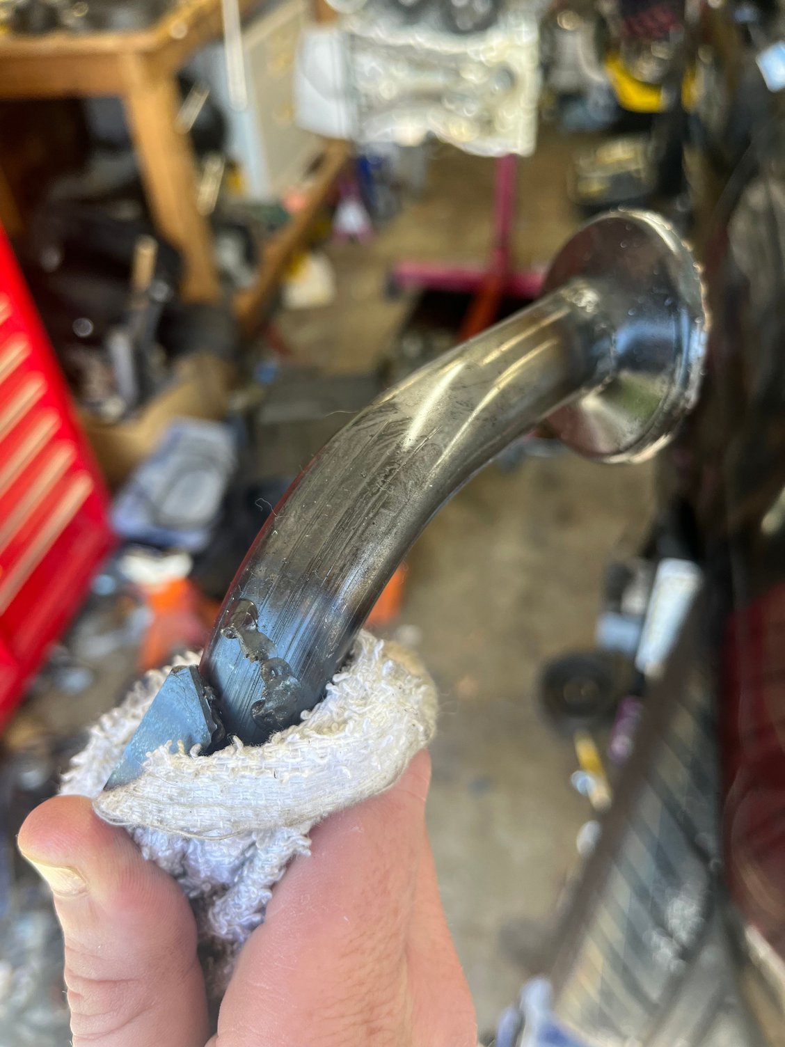 And just for funsies - either I've got a LOT of iron shavings in my oil pan, or there's a lot of steel just on the other side of this pan. My Harbor Freight shop light actually sticks to the aluminum oil pan!