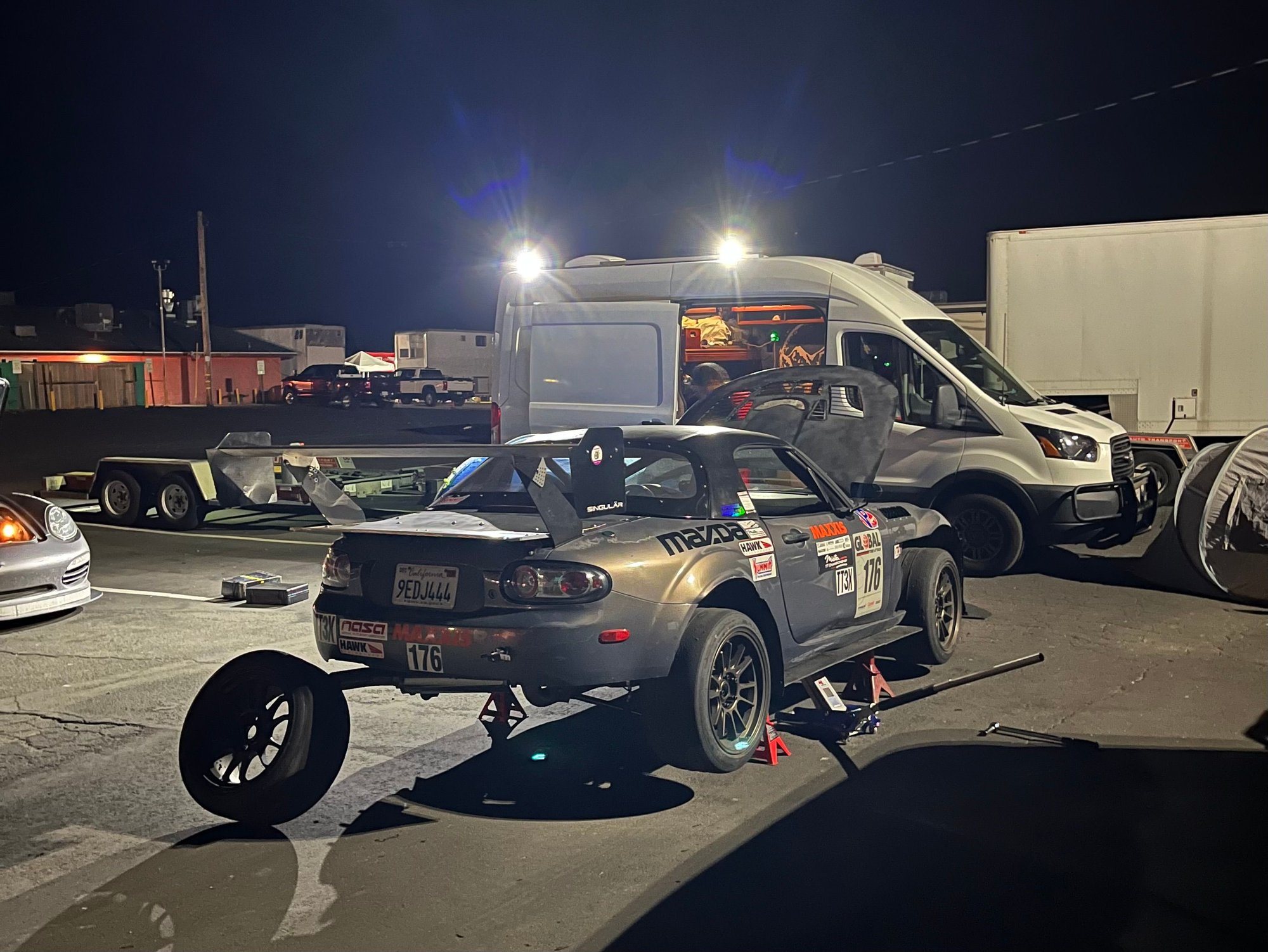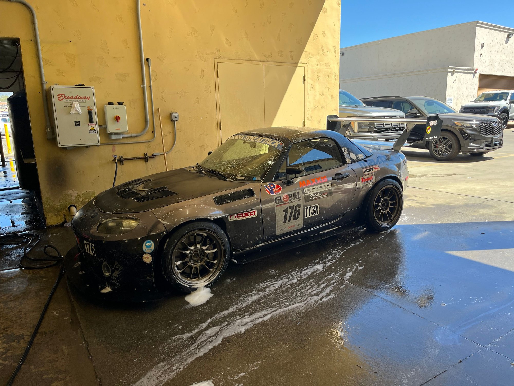 Bled the brakes, did a very thorough bolt check, swapped my DTC60 pads in, epoxied my boost gauge into the A/C vent so it stops popping out, and swapped the race wheels/tires back on. Yesterday, I took the car to work for a final ?€œshakedown?€, and the O2 sensor pegged full lean for a minute and then died. Nothing can ever just go smoothly :rofl: I swapped my spare sensor in, turned the boost up from 7 to 9psi, and drove the car to work again today. Knock on wood, she seems ready. I?€™ve got a set of 2 day-old RC1s and a set of 2 day-old Toyo Rs and will be running the RC1s this weekend. That $150 set of RRs lasted just as long as I needed them to. About 5 weeks of canyon runs, intermittent commuting, and one track session. I pulled them off and installed some of my remaining 235 Rs on my street/backup wheels. https://cimg6.ibsrv.net/gimg/www.mia...08fbf6094.jpeg Actually washed the car today and polished the yellowing headlights. She actually looks borderline presentable. https://cimg9.ibsrv.net/gimg/www.mia...a7996ccfd.jpeg This weekend is looking good. Looking at the signup list, there?€™s one guy who will probably run away with the win, but the Miata and I should be battling for a podium spot if all goes well. Very excited. |