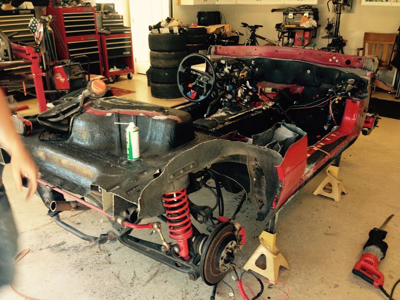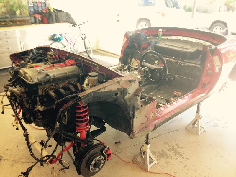 I've had it tucked in the back of my mind that I wanted to do a ghettocet type build for quite some time. I peruse craigslist daily, but never really came across anything inspiring enough to move on. In July I found the perfect donor - a well-maintained 1995 Miata that had some front end collision damage. The next day it was in my garage and we were off to a nice start.