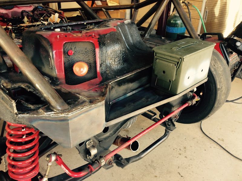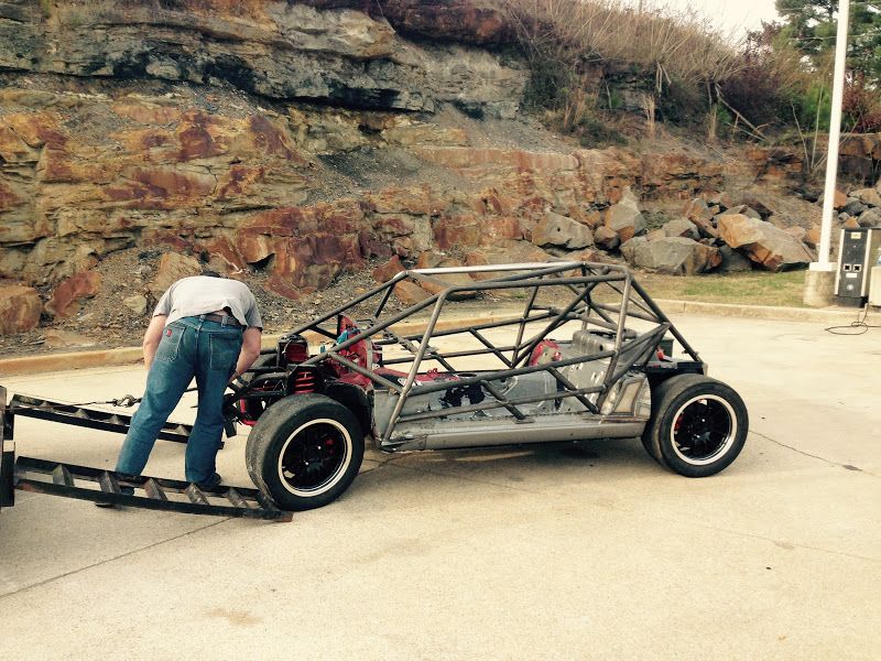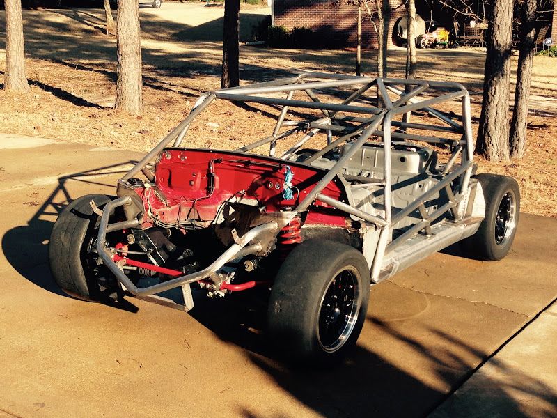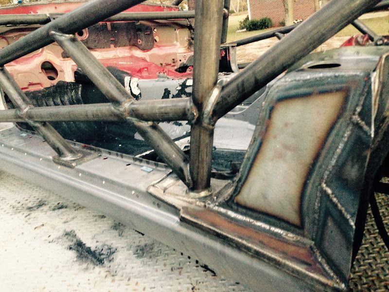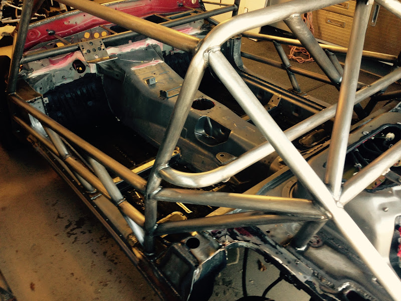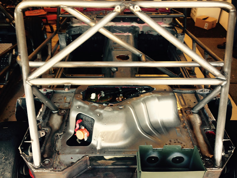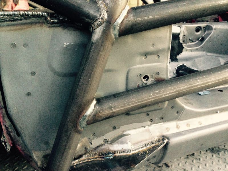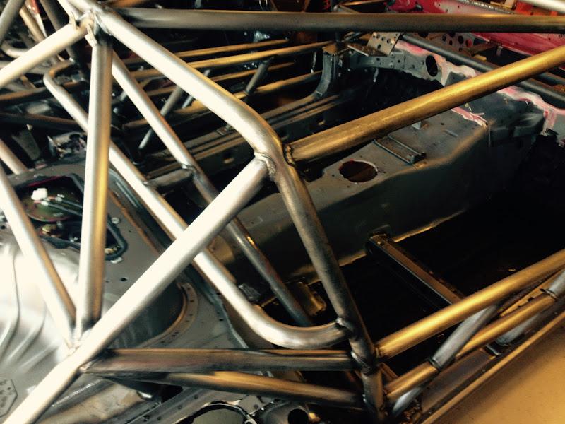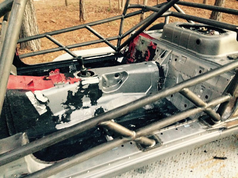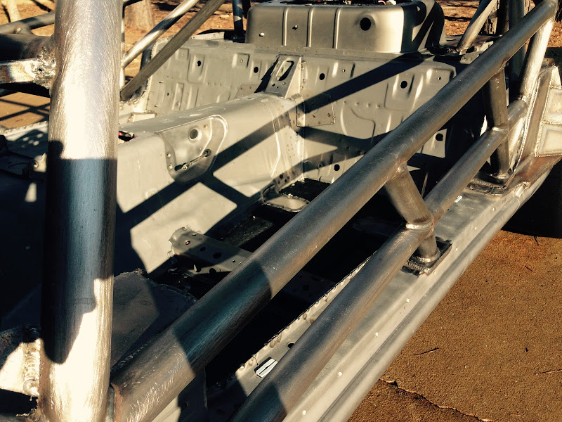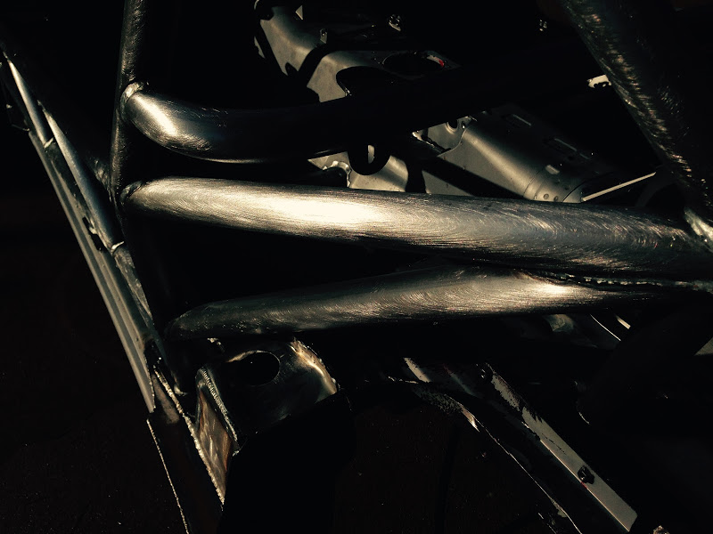 First off - if any one of you decides to build one of these cars DO NOT start with a chassis that has been sprayed with truck bed liner. That stuff is very difficult to remove, and it at least needs to come off everywhere where the cage welds up. In my case it all needed to be removed so that the tub can be painted. If I ever get a time machine I'm going to go back to the night the PO sprayed this thing with rhino liner and be like "dude wtf stop!!!".