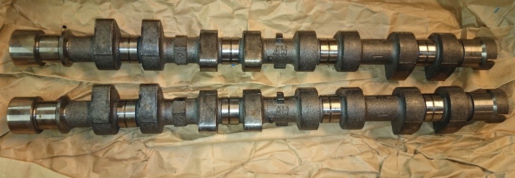 So i strapped the belt onto the wheels, loosened the cam belt adjuster and pulled the intake cam and there it was, the suspected lifter sitting 2-3 mm higher than the rest.