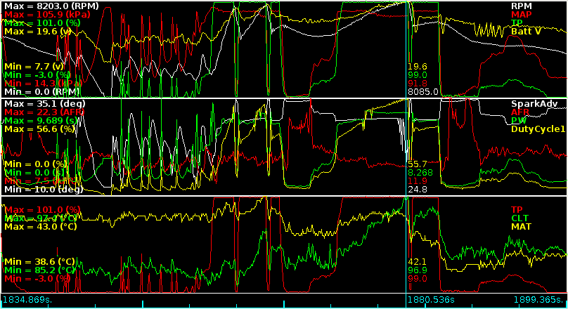 While it was sputtering on three cylinders I noticed the vacuum at 70kpa, which made me investigate Alpha-N (obvious but...).
