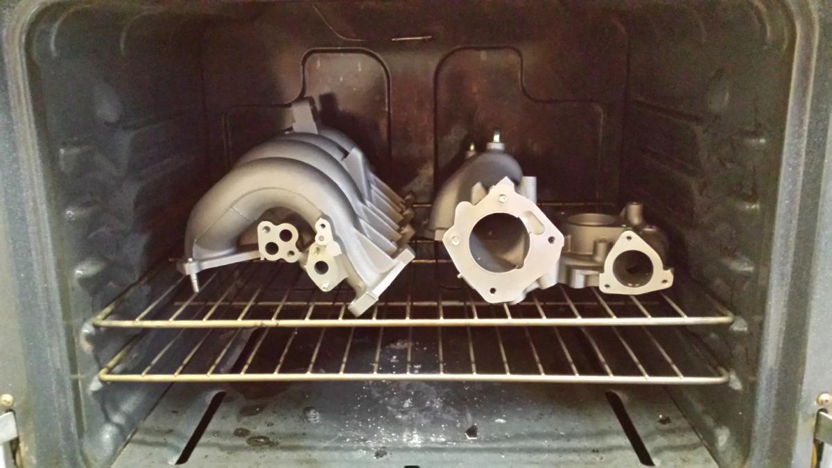 After the paint dried, removed the tape and loaded up the oven...