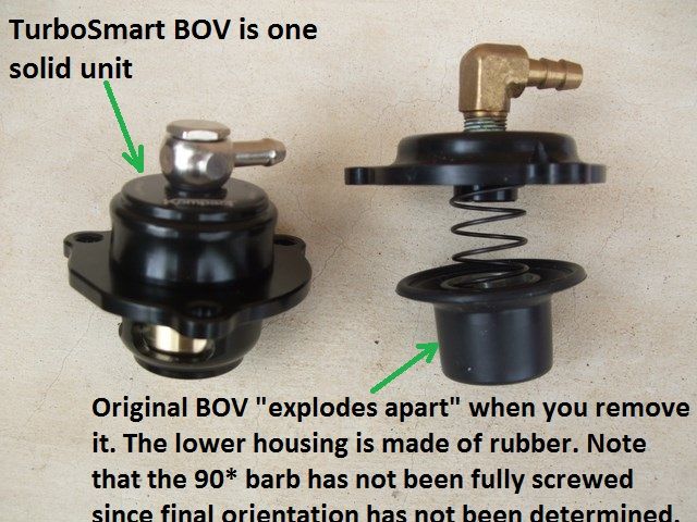 The original BOV is "dinky" in comparison to the TurboSmart BOV: