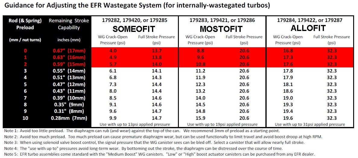 Here is the EFR wastegate actuator chart: