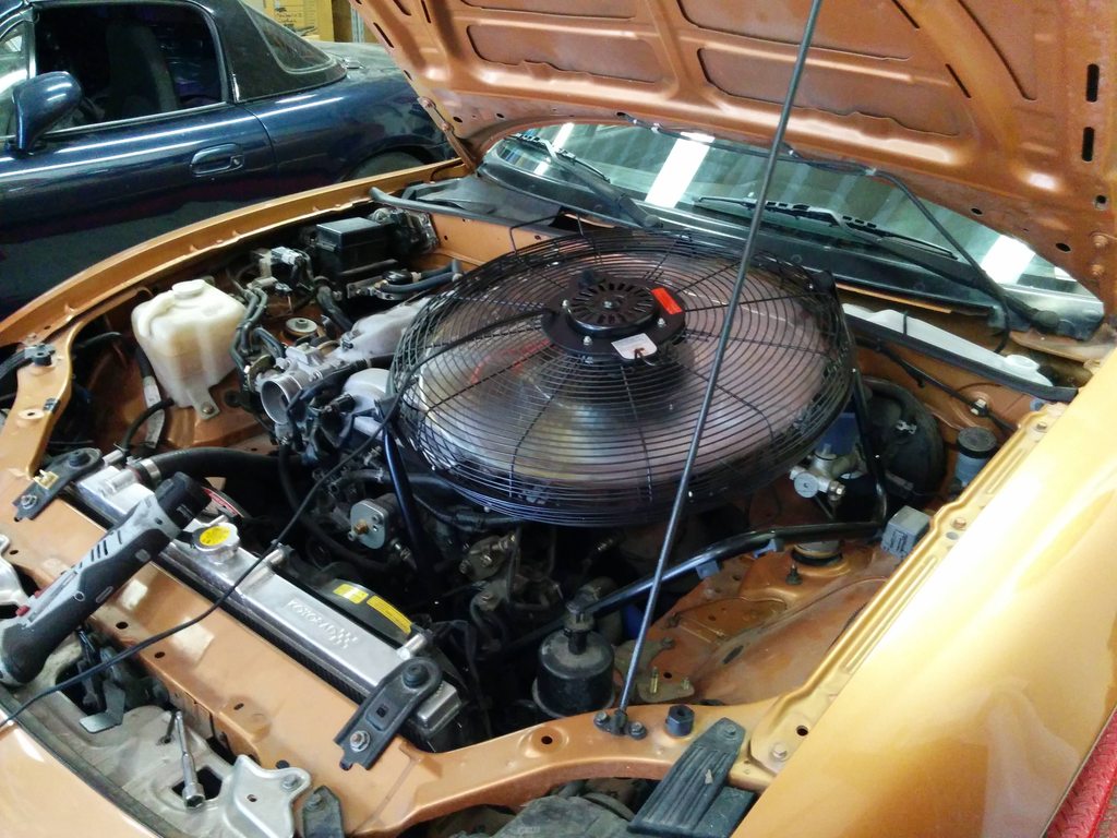 Steady state highway cruise at 80~ish really has a tendency to heatsoak things. Great big fan really helped pull the heat out of the cast iron behemoth manifold so I could actually, you know, unbolt it.