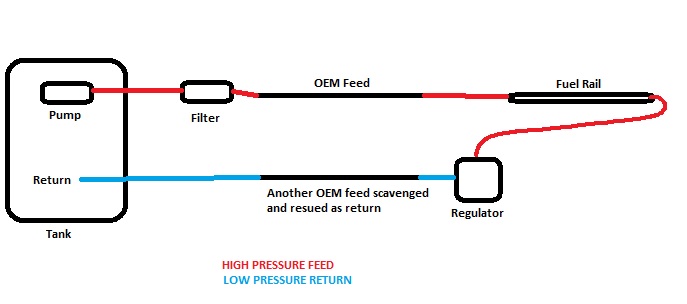 At idle the injectors are running like 2% duty cycle, so the flow rate through the return isn't all that much lower than the feed line.