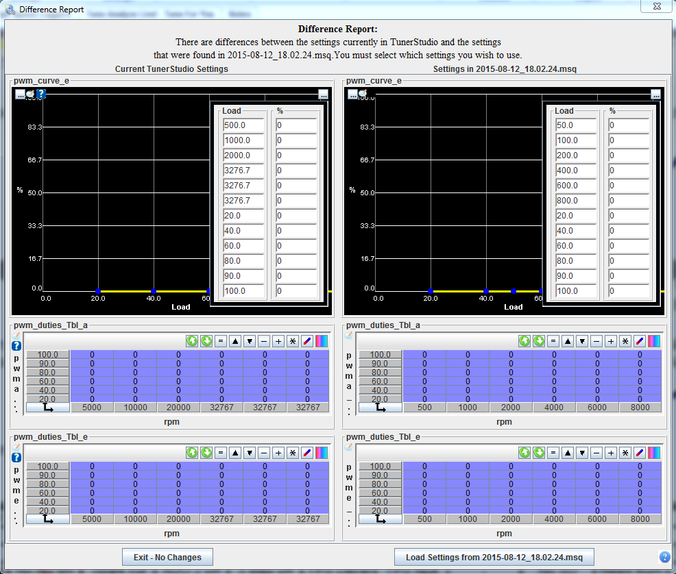 I have no idea what the above tables do but obviously the numbers in the msq I saved look more sane than what's in the controller. I'm guessing I should probably just use the msq settings and then figure out my no-start?