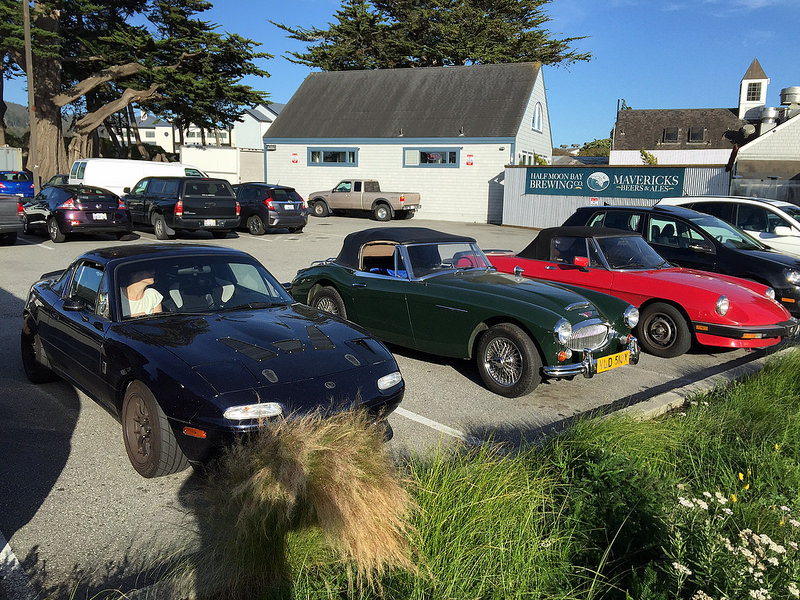 Took the car out for a nice drive out to the coast and ended up stuck in a 4 hour traffic jam from a huge air/car show. Clutch is broken in. My GF and I pulled off and stopped to grab some lunch in Half Moon Bay as a respite from the traffic. found these 2 guys parked next to me when I left.