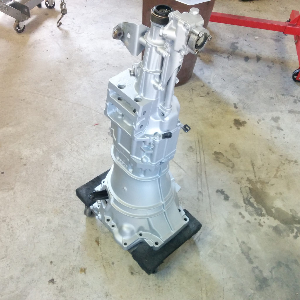 Degreased, slightly sanded off some oxidization, and then painted the transmission: