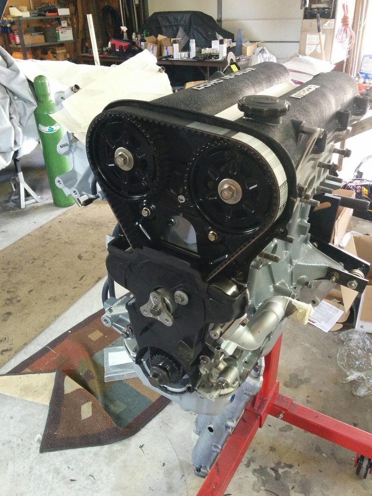 At this point I'm waiting on Motor Mounts (949 Hybrid) and brake lines (backordered with Trackspeed water/oil kit). Then I should be able to start this thing up on the stock ECU and break it in.