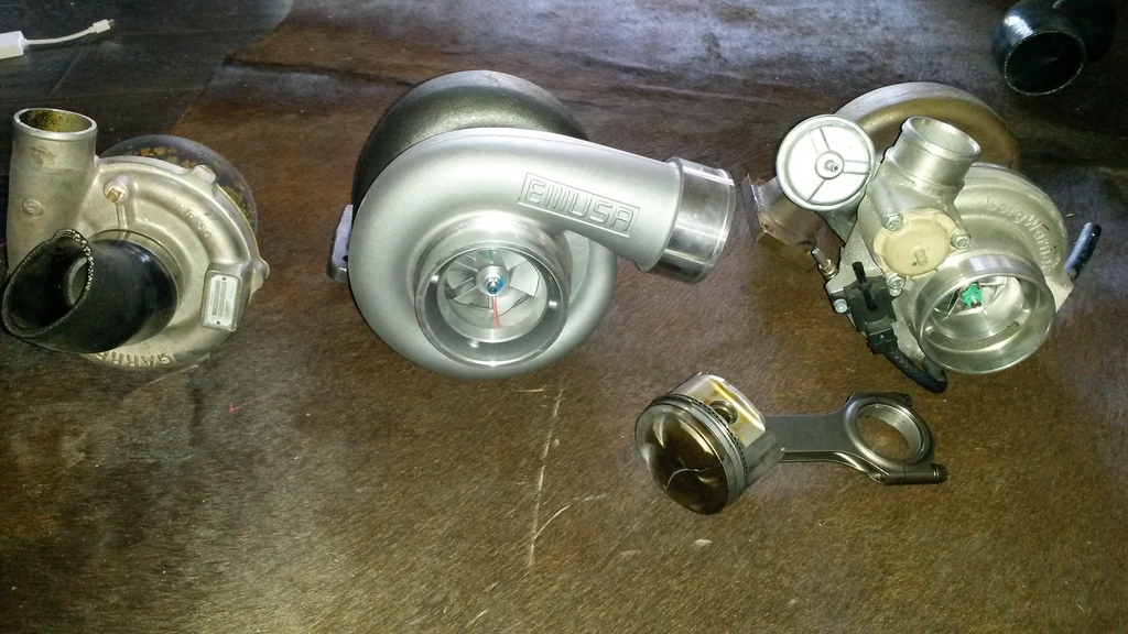 EFR 7670, Garrett GT3271, and piston/rod for reference.
