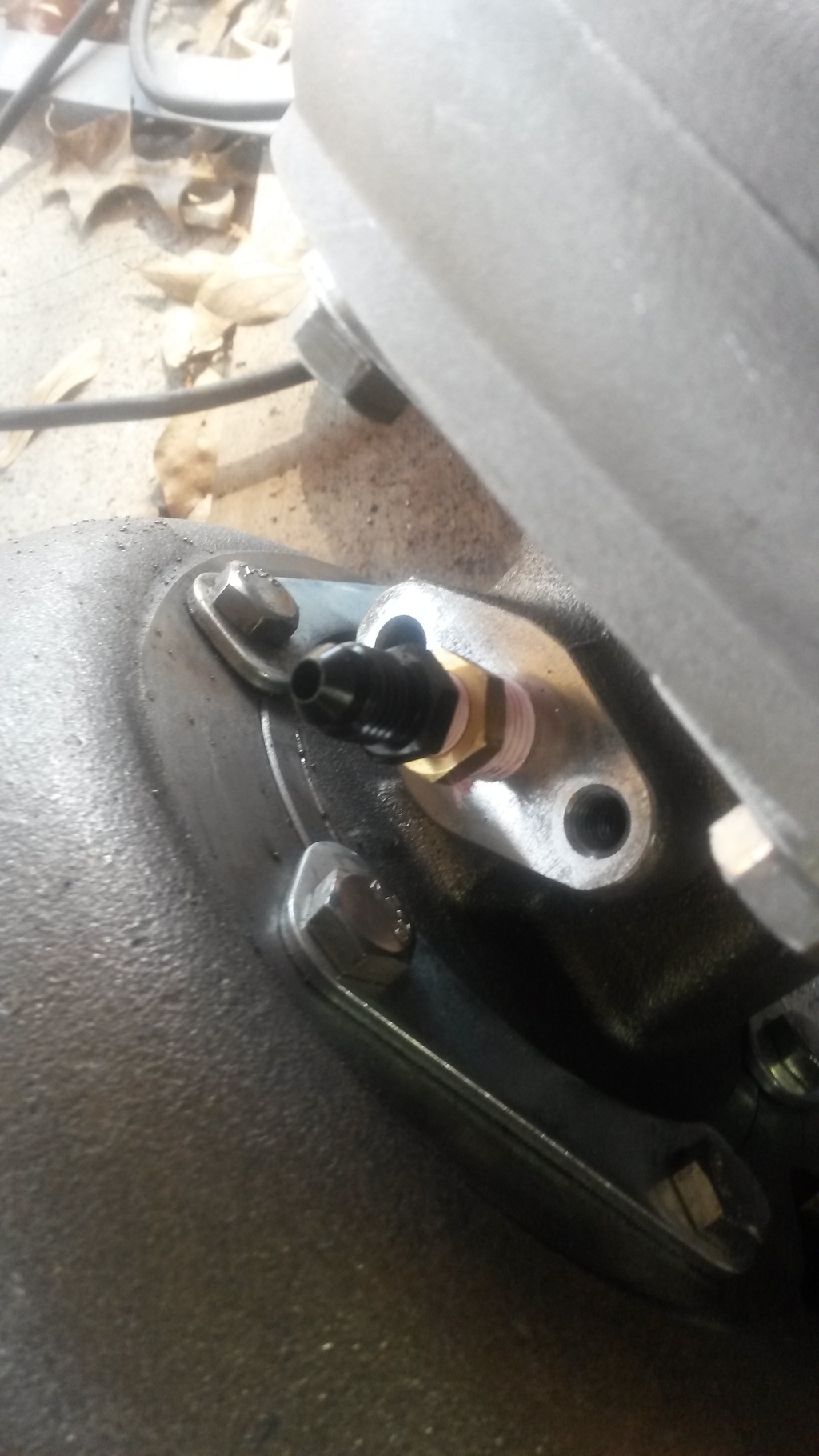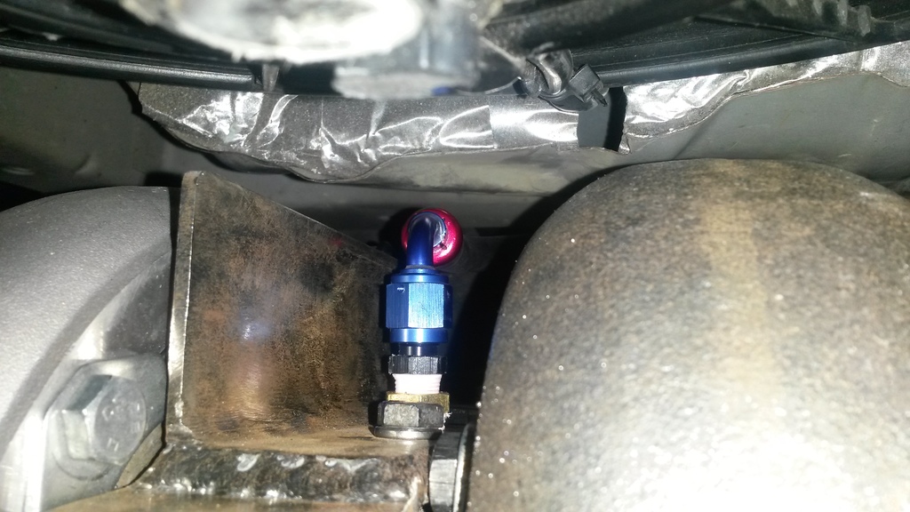 That's the return though, isn't it? The oil feed is on top with the strap that holds the turbo up there, looks like he has 3 or 4an line up there.