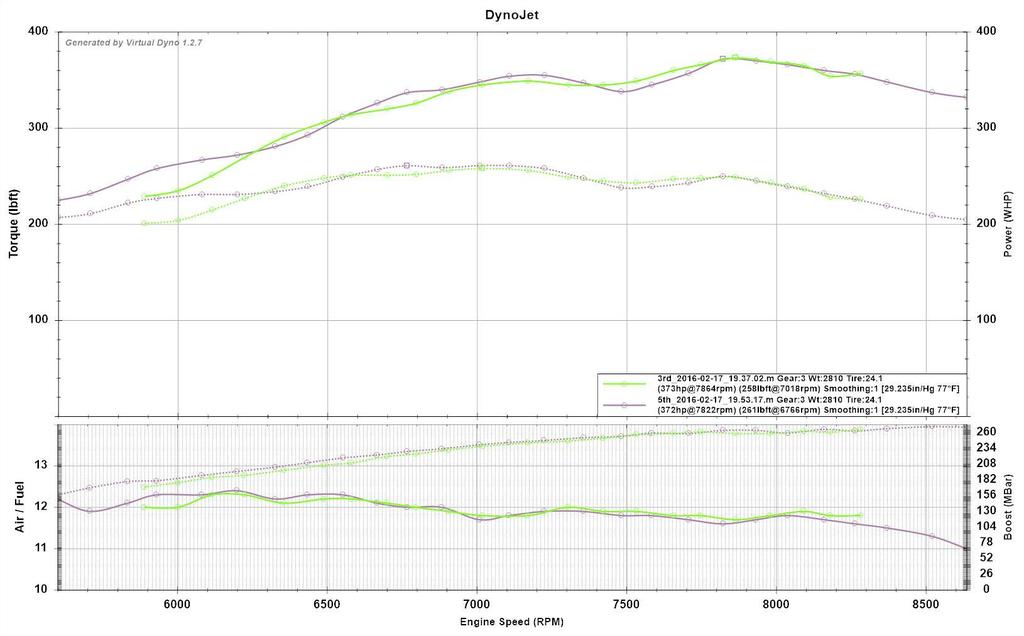 Final VD for now, till I get boost controller working right. It's pretty consistent too, two pulls overlayed at the same boost level.