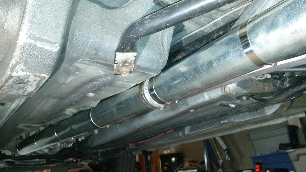 Also made a heat shield for the exhaust pipe today between the turbos. It's a shiny sheet metal shield with a .065" air gap. Works great, at idle the turbo wheel speed in the back is 4 or 5 times faster at idle, and you can feel the exhaust pulses where before, it was just a slow stream of air.