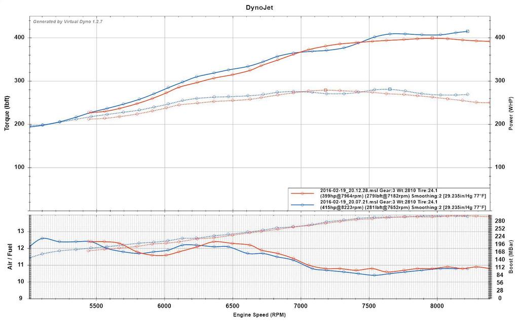 As for afr, e85 can still be kept at 12 unlike pump where you'd want to fatten it up with serious boost.