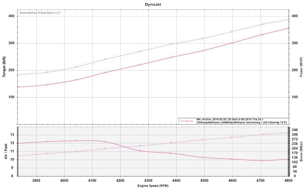 One of the issues with virtual dyno is that it doesn't depict spool the way a real dyno does unless you run the car in 5th, and at that point you're well into take-me-to-jail-do-not-pass-go-do-not-collect-200-dollars territory by redline.