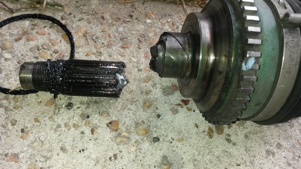 That or it broke the threads off the end. Either way the wheel bearing is toast. Hub might be fine, but I also don't think there's enough room for it to come fully out if it's just the threads. Might of stripped just half the splines after the threads broke. That's my bet!